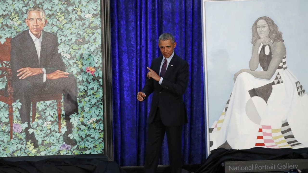 Este el momento en el que Barack y Michelle Obama develan sus pinturas para la Galería Nacional de Retratos