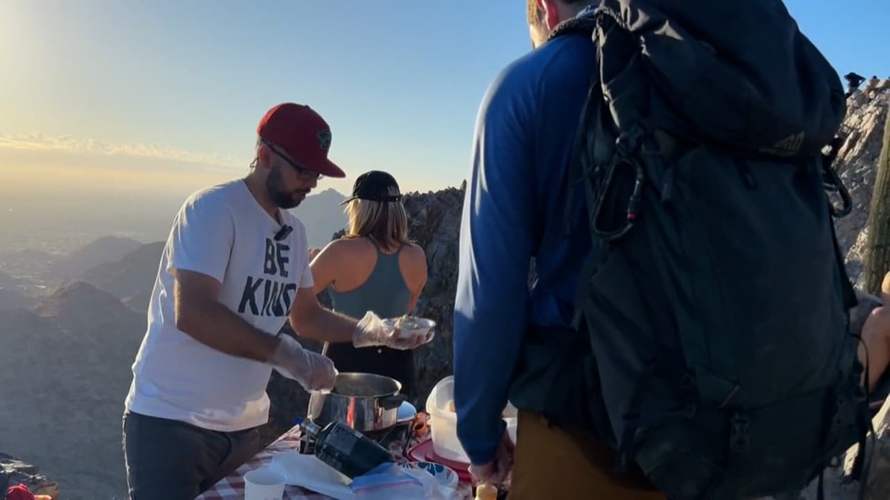 Daniel Angulo prepara bísquets con ‘gravy’ para los montañistas que logran llegar a la cima de Piestewa Peak en Arizona. Los entrega sin cobrar y es una forma de conjuntar dos de sus pasiones: el senderismo y la comida.