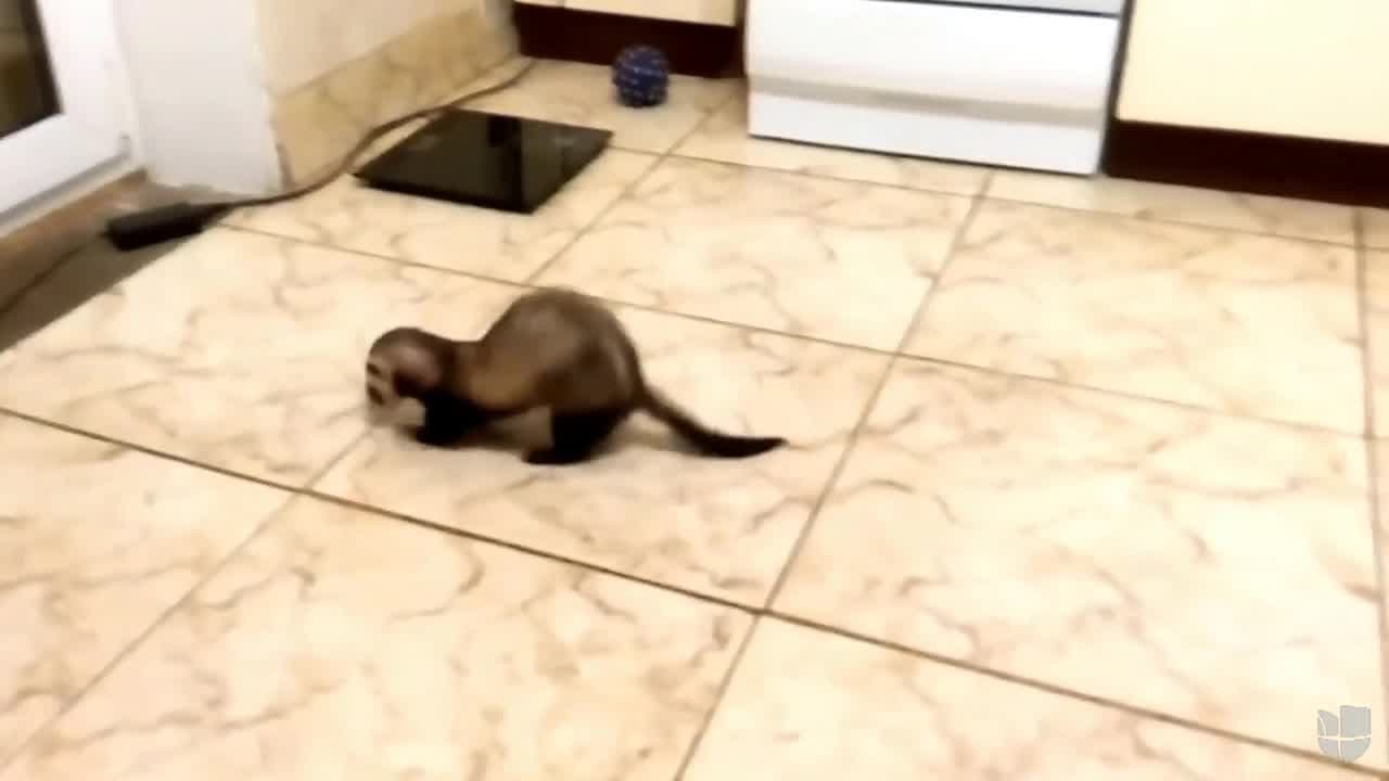 Miren a este chistoso hurón que se olvidó como caminar hacia adelante.
