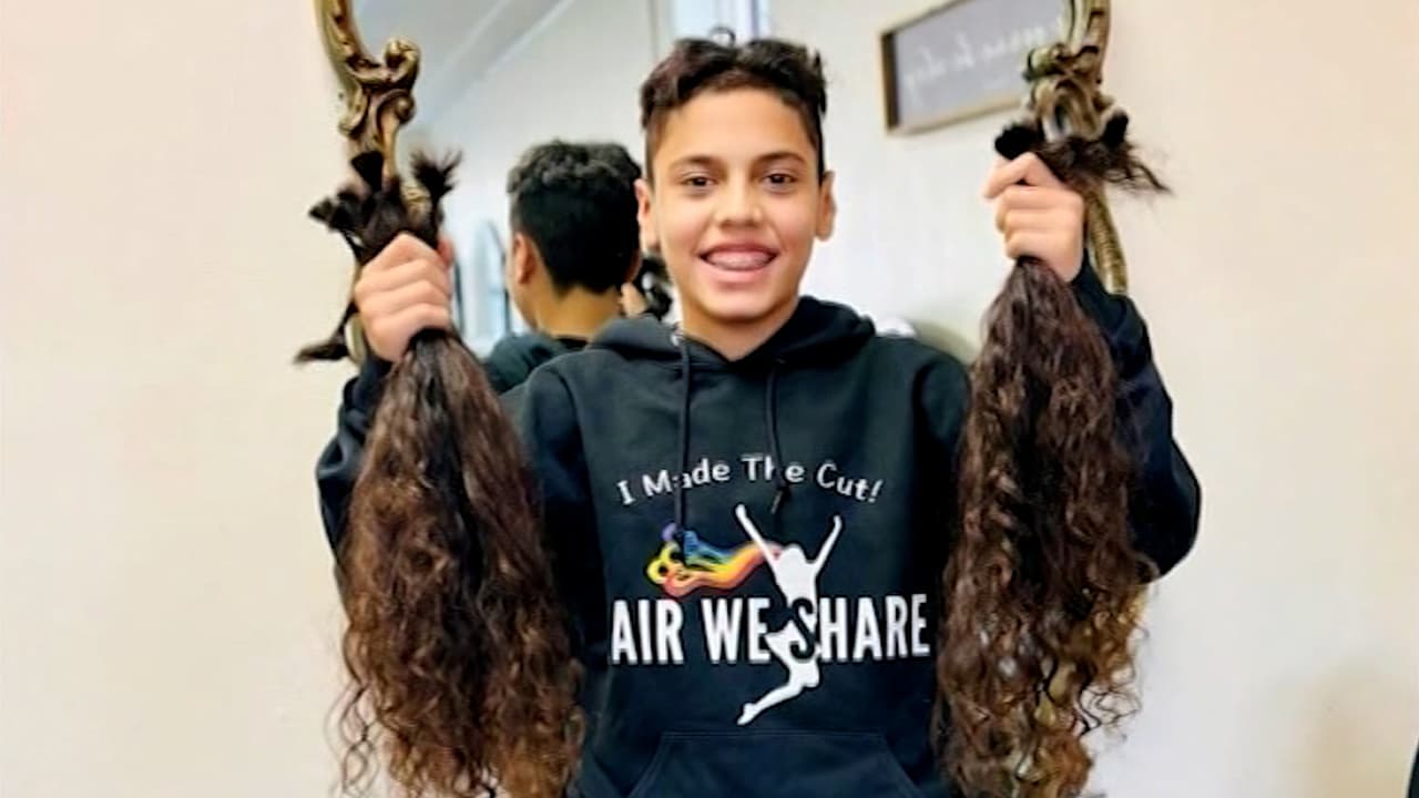 Emilio Santana, de 14 años, recién cortó su cabellera de dos pies de largo para que una organización que hace pelucas para niños con cáncer pueda regalarlo a alguien necesitado.