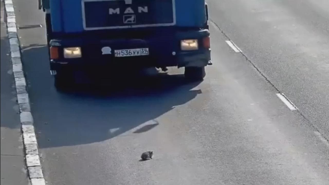 El pequeño animal quedó atrapado en esta importante vía por mas de tres minutos y medio, según informaron las autoridades viales de Kaliningrad en Rusia y definitivamente fue un milagro que se salvara.