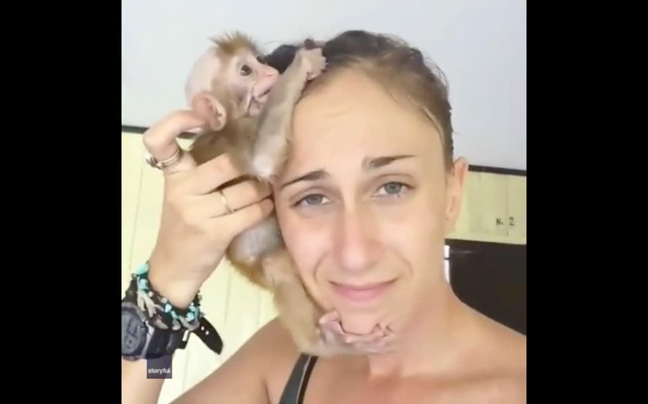 Este monito traumado se niega a dejar a la mujer que los rescató