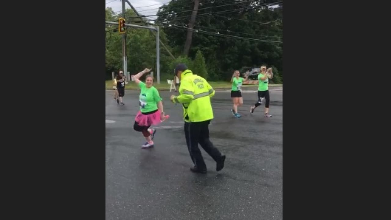 Este policía sorprendió a los participantes de una carrera con su espontáneo baile