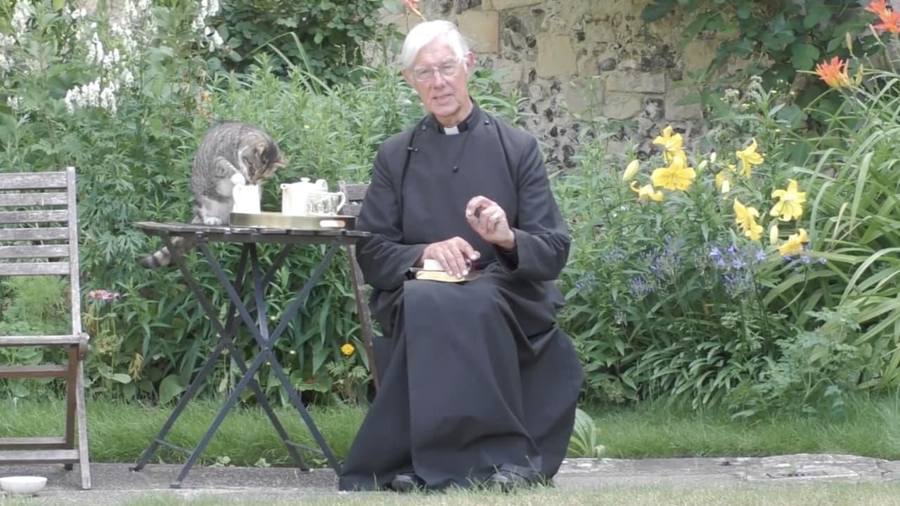 Este travieso gato se tomó el desayuno del decano de Canterbury durante la transmisión de la oración matutina