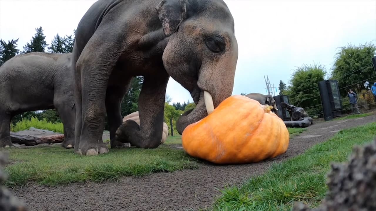 El zoológico Oregon, en Portland, celebra anualmente el certamen de aplastamiento de calabazas que pesan cientos de libras de peso para dar inicio a la temporada de Halloween. Una operación de destrucción en la que los paquidermos parecen pasarlo de lo más bien.