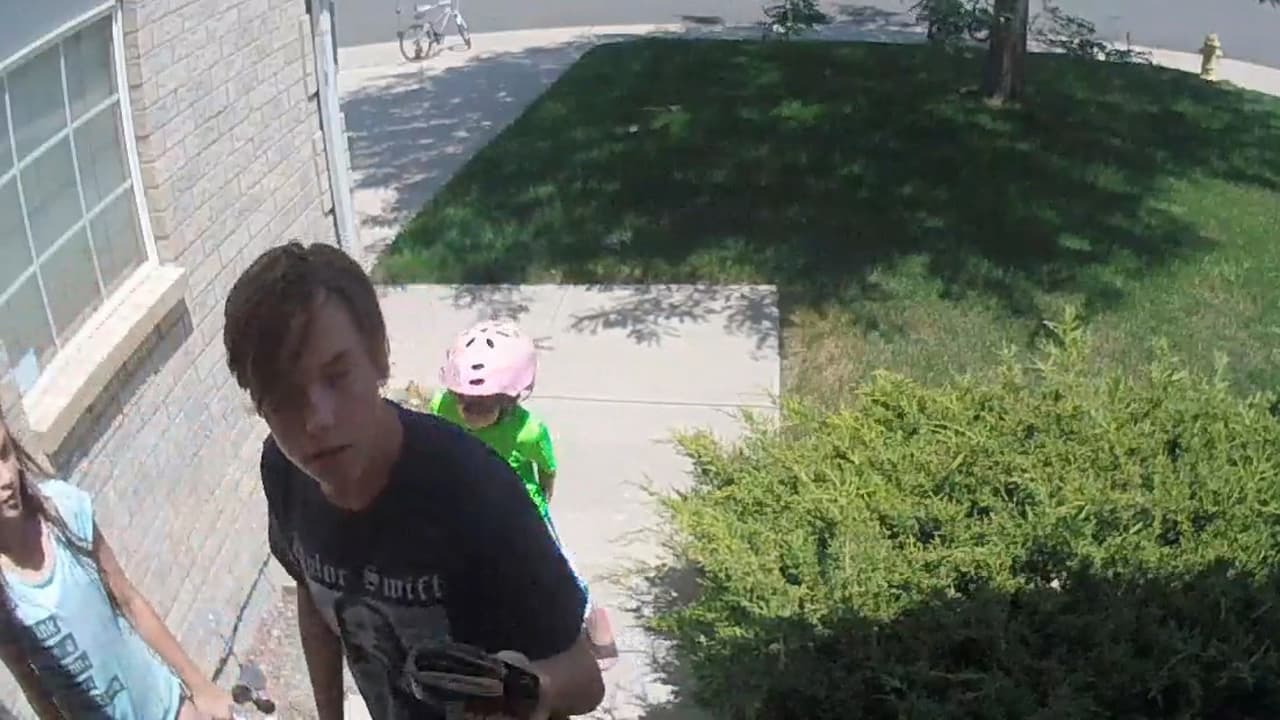Una cámara instalada en el portal automático de una casa en Aurora, Colorado, registró a Haylie Wenke, de trece años, a su hermano pequeño y a una amiga dejando un mensaje para el dueño de la cartera, quien publicó el video para que lo ayudaran a encontrarlos y agradecerles el gesto.