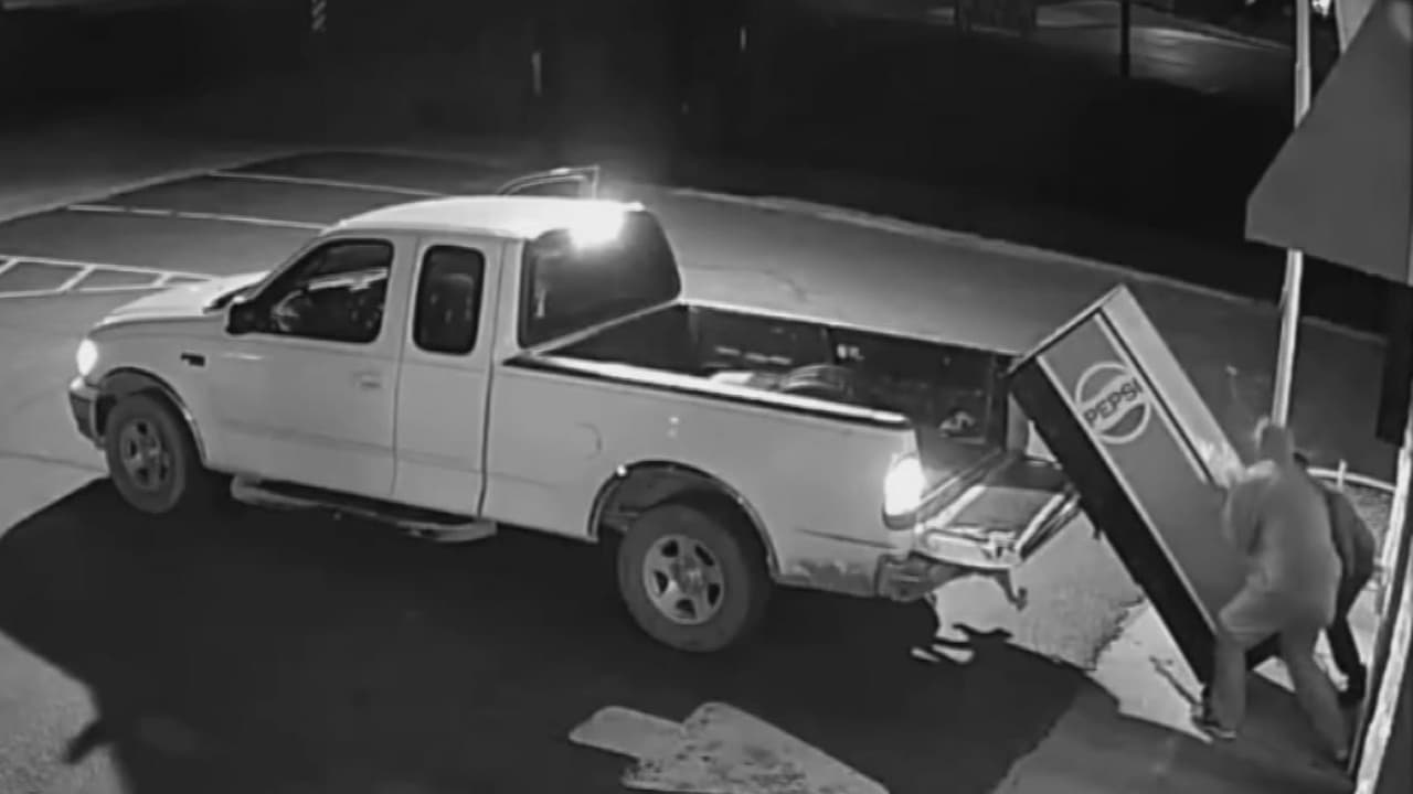 El Departamento de Policía de Oklahoma City está buscando a dos sujetos que robaron una máquina expendedora de un negocio local. El video muestra a uno de los hombres acercándose a la máquina para comprar una bebida, luego regresa con un cómplice y cargan el aparato en la parte trasera de su camioneta.