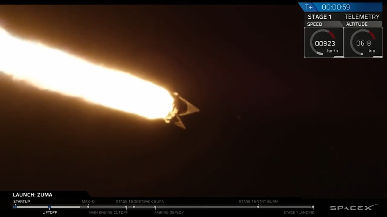SpaceX realizó la noche del domingo su primer lanzamiento del nuevo año, un satélite secreto de nombre clave Zuma.