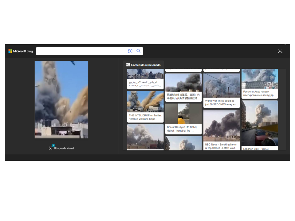 Con una búsqueda inversa de imágenes en Microsoft Bing, hallamos una publicación en la red social X (antiguo Twitter), con fecha 28 de mayo de 2023, en la que se ve la explosión y que confirma que el video no es actual.