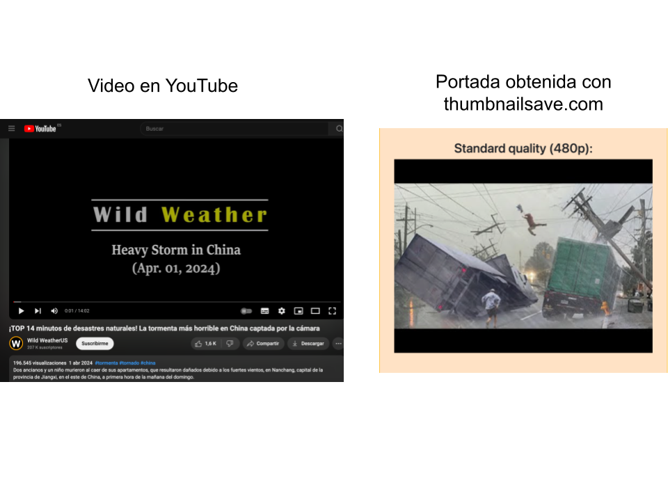 La imagen es la portada del video, también conocida como miniatura de portada o thumbnail. Para poder conseguirla utilizamos la aplicación thumbnailsave.com, que captura la misma.