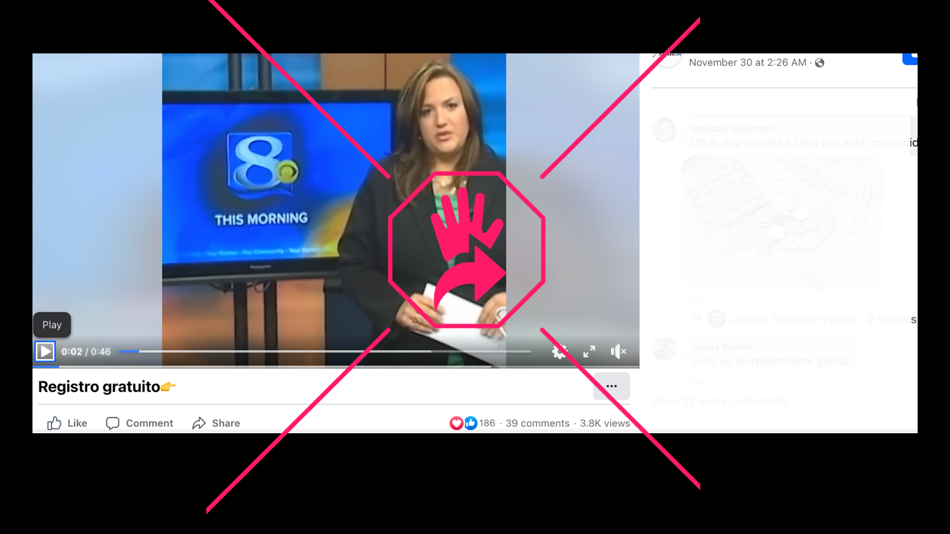 En el video que estamos verificando notamos una resolución baja en las imágenes. Realizamos una búsqueda inversa en Google, a partir de una captura de pantalla de la imagen de la presentadora, y nos llevó al contenido original: un segmento de noticias de WKBT News 8 Now, canal local de Wisconsin, Minnesota. Al compararlo, identificamos similitudes y diferencias, y observamos que el clip original no era actual, sino que fue publicado en 2012.