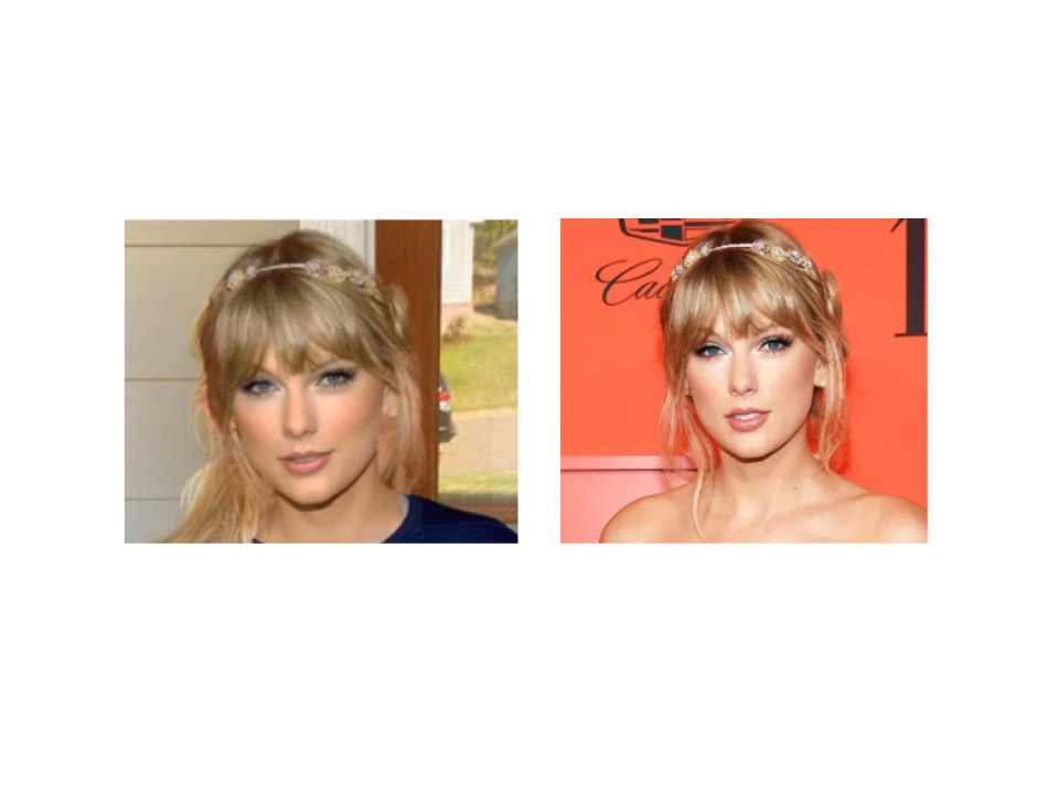 La imagen que se difunde en YouTube la muestra con el cabello semisuelto hacia su lado derecho, con una especie de diadema, y un maquillaje rosa. Mediante una búsqueda inversa de imágenes en Yandex hallamos que su rostro, cabello y, especialmente, el adorno del cabello coinciden con las fotografías que le tomaron en la Gala “Time” 100, de 2019, realizada en Nueva York. En el servicio de fotografía Getty Images también encontramos esa foto de Swift y en su descripción indica que fue tomada el 23 de abril de 2019 durante la Gala Time 100 en el Lincoln Center de Nueva York.