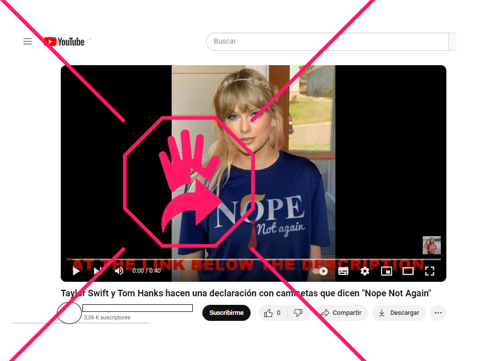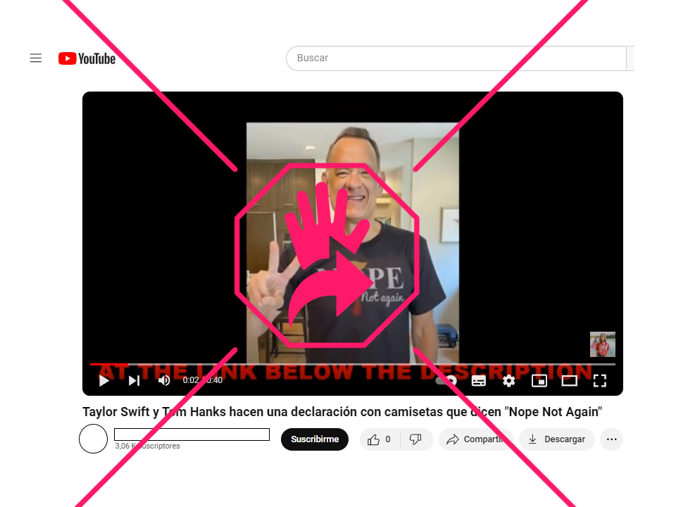 En YouTube se encuentra la misma imagen de Hanks en un video publicado en un canal que lleva a una tienda online de mercancía. En ese clip también se incluye una supuesta foto de la cantante Taylor Swift con una camiseta azul marino y el mismo mensaje antitrumpista.