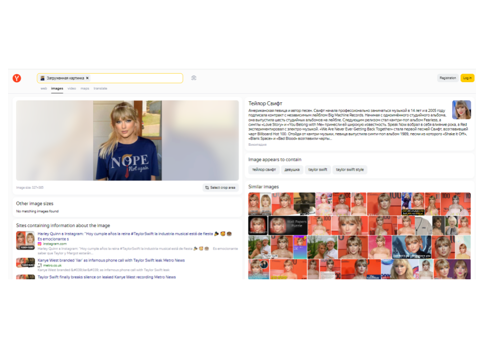 Búsqueda inversa de imágenes en Yandex. Realizada el 29 de enero de 2024.