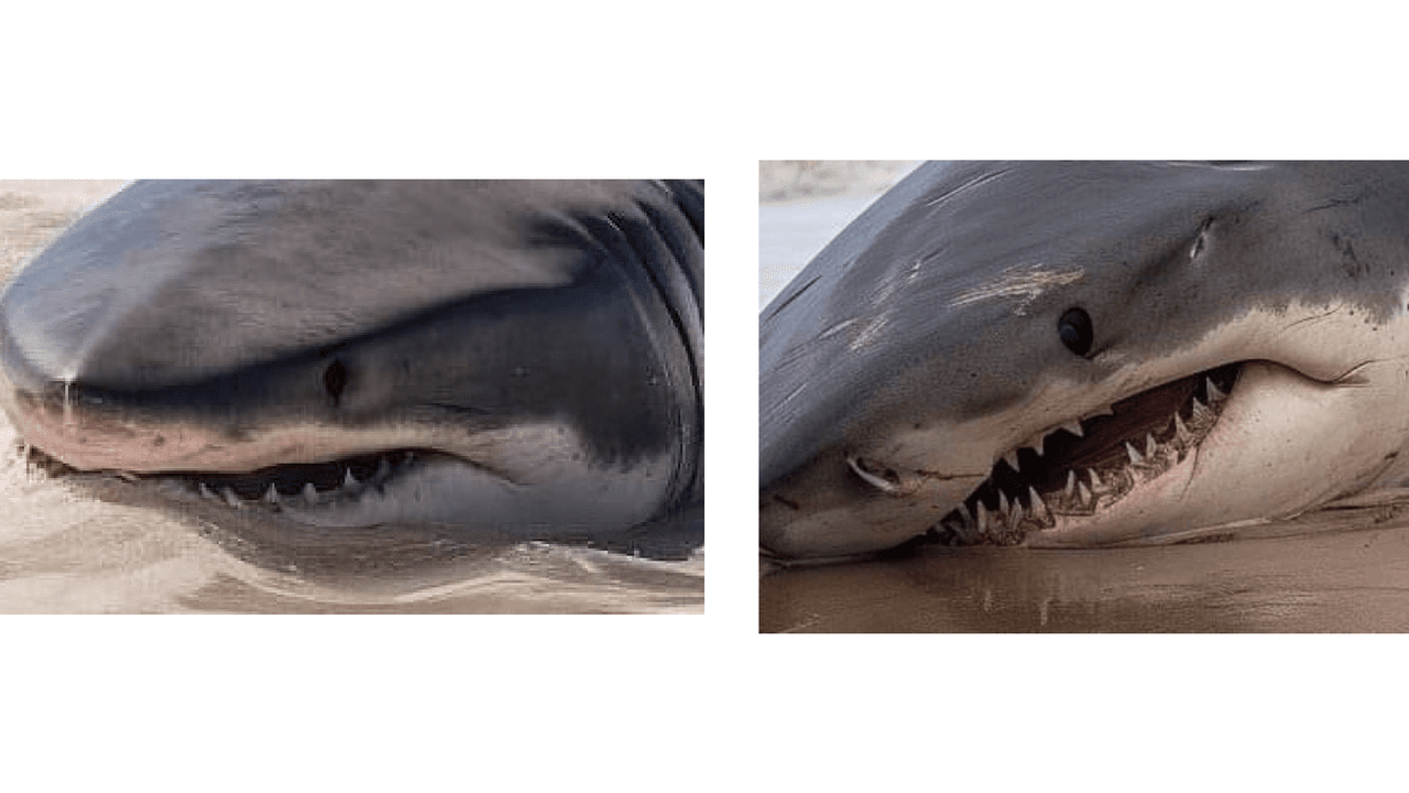 Además, comparando los dientes del lado izquierdo en la tercera y la cuarta foto vemos que el tiburón, de existir, no es el mismo ya que el número de piezas dentales es más abundante y disponen de menor menor espacio entre ellas en la última foto.