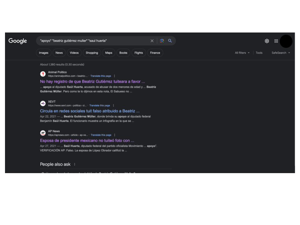 Pero desde abril de 2021, luego de que Huerta fue arrestado por primera vez tras ser acusado por un adolescente de tocamientos inapropiados, Gutiérrez Müller calificó en Facebook como una “noticia falsa” la imagen del tuit apócrifo que circulaba ya entonces. Al hacer una búsqueda en la herramienta digital Wayback Machine, que compila registros de páginas web aún después de que fueron eliminados, y en registros periodísticos, elDetector corroboró que no hay indicios de que Gutiérrez Müller haya difundido una publicación así en su cuenta de la red social X, antes llamada Twitter.