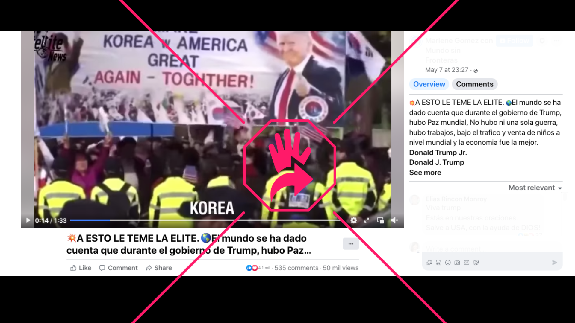 “El mundo se ha dado cuenta [sic] que durante el gobierno de Trump, hubo Paz mundial, No hubo ni una sola guerra, hubo trabajos, bajo [sic] el trafico [sic] y venta de niños a nivel mundial y la economia [sic] fue la mejor”, asegura el texto que acompaña el video.