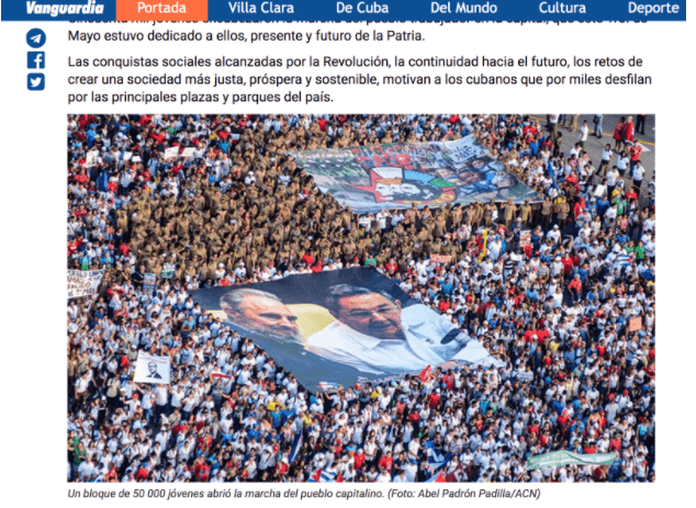 Aparte de esto realizamos una búsqueda en Google con las palabras: “1 de mayo Cuba” y encontramos otro fragmento de la misma imagen en el periódico cubano Vanguardia.