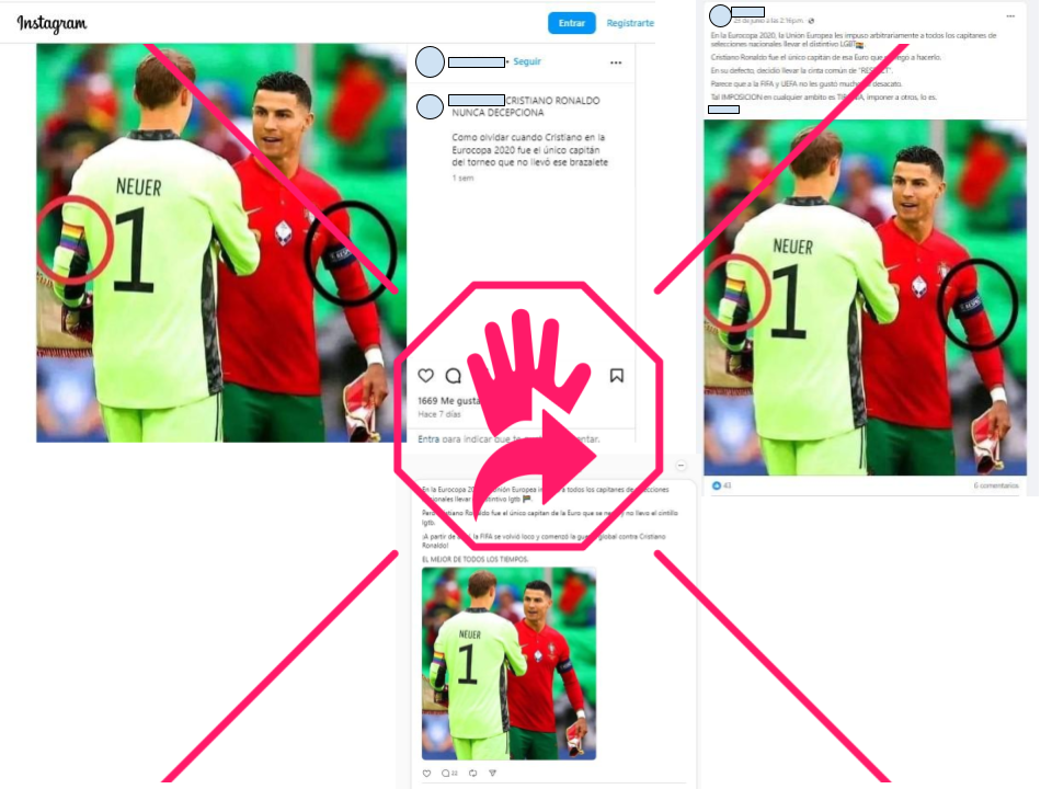 La afirmación de que “en la Eurocopa 2020, la Unión Europea impuso a todos los capitanes de selecciones nacionales llevar el distintivo LGBTQ, pero Cristiano Ronaldo fue el único capitán de la Euro que se negó y no llevo el cintillo”, circula en Threads, Facebook e Instagram.