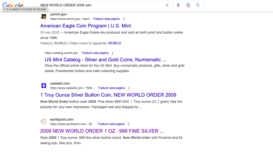 eBay. Moneda artística de plata del Nuevo Orden Mundial de 2009 por el artista Terbo Ted. Consultada el 13 de abril de 2023.