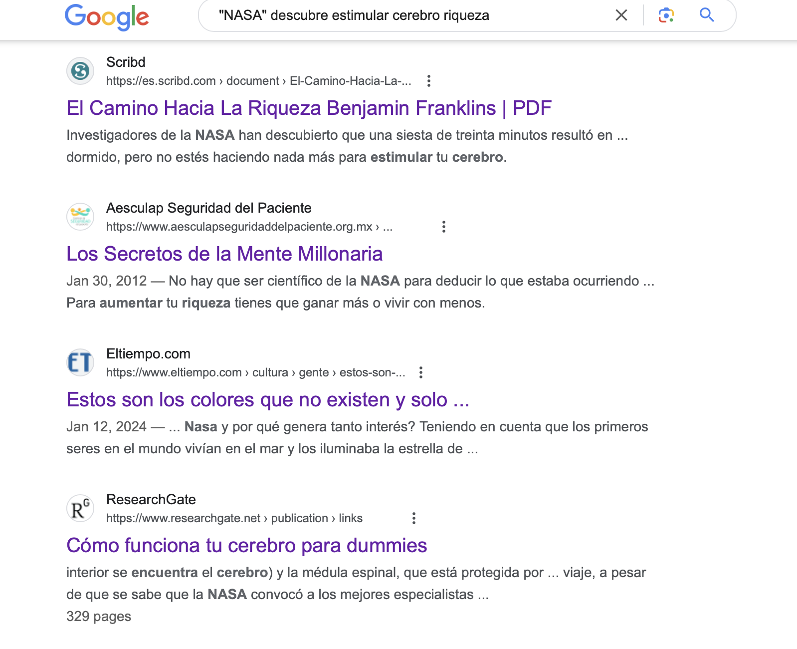 Desde elDetector realizamos una búsqueda de palabras clave en Google y en la web de la NASA, pero no encontramos nada que indique que la agencia espacial hizo algún descubrimiento sobre cómo estimular el cerebro para generar riqueza. Así que nos pusimos en contacto directamente con la institución.