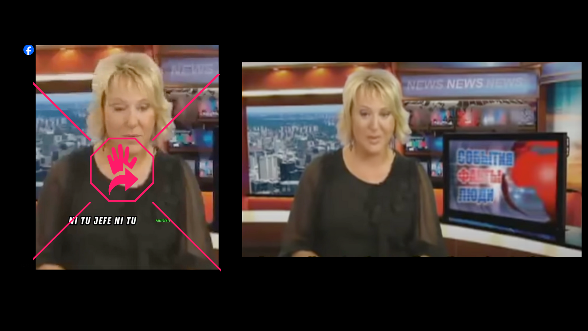 En busca de información adicional, realizamos una búsqueda inversa de imagen en Google utilizando la captura de la mujer que supuestamente narra el descubrimiento y encontramos que el mismo video circula al menos desde 2011 y que el audio no está en español. Identificamos que la mujer tiene la misma vestimenta y se encuentra en el mismo escenario que se ve en el clip que circula en redes, con el texto al fondo en el que se lee “Noticias” en inglés. En el audio se escuchan interrupciones y repeticiones, a diferencia de lo que se oye en el post desinformante.