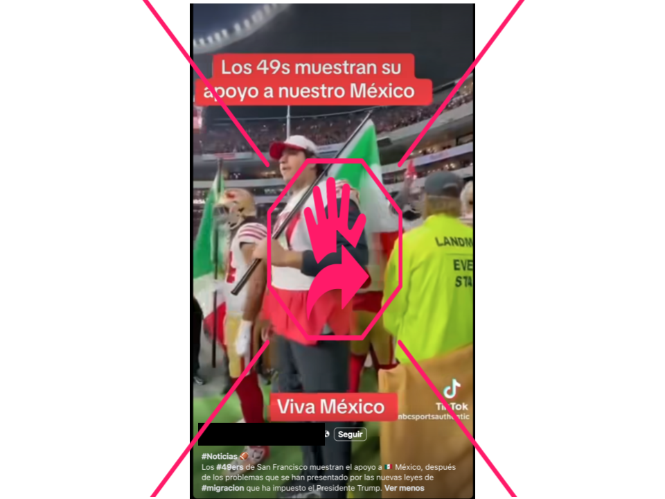 Un video compartido en Facebook muestra a varios jugadores de fútbol americano ondeando banderas de México en un estadio y asegura que se trata de miembros de los 49ers de San Francisco que se manifestaron en contra de las políticas migratorias del presidente Donald Trump y mostraron su apoyo a México, pero eso es falso. La secuencia del desfile está fuera de contexto, pues circula en redes sociales desde noviembre de 2022.