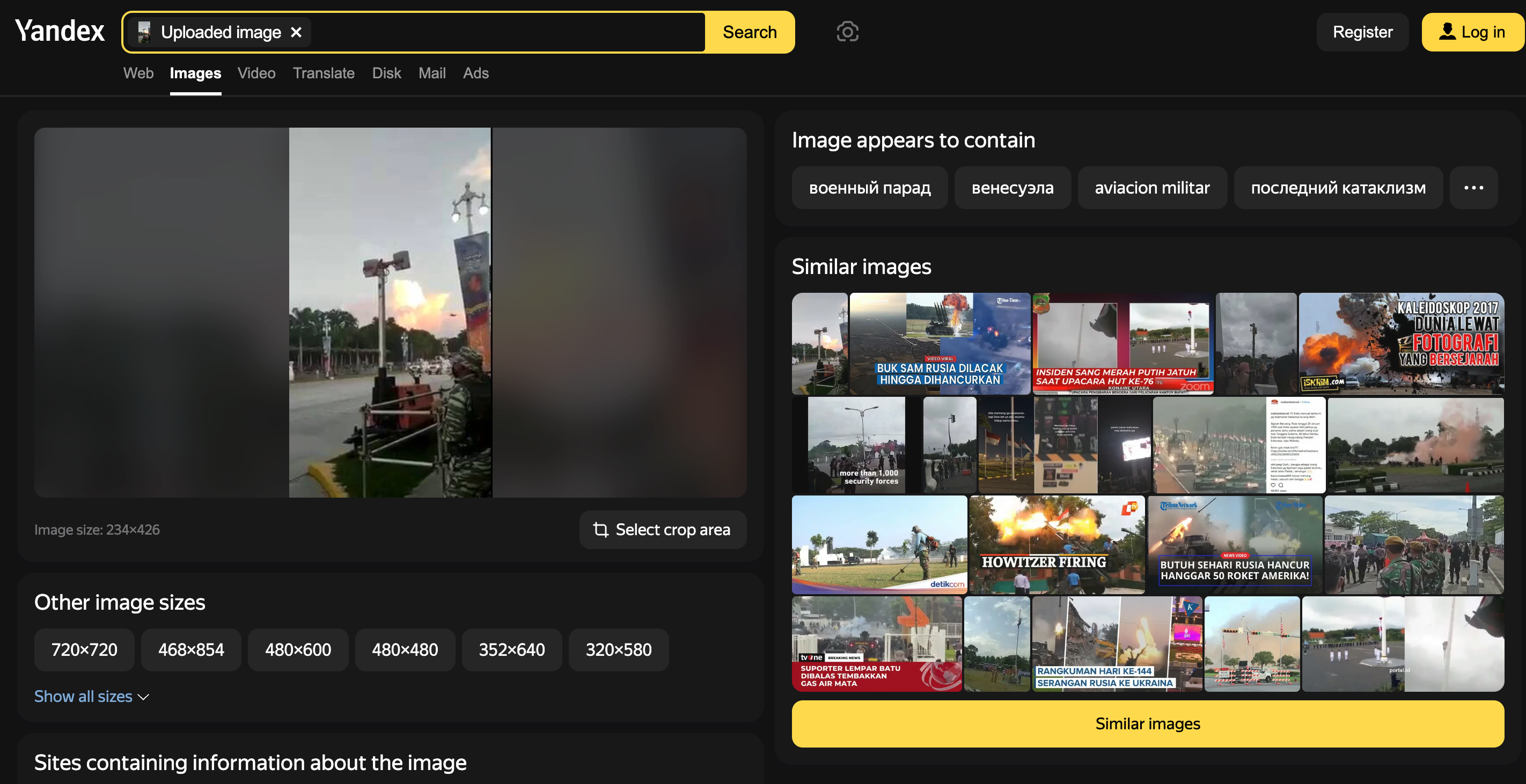 Yandex. Búsqueda inversa de imágenes. Consultado el 11 de julio de 2023.