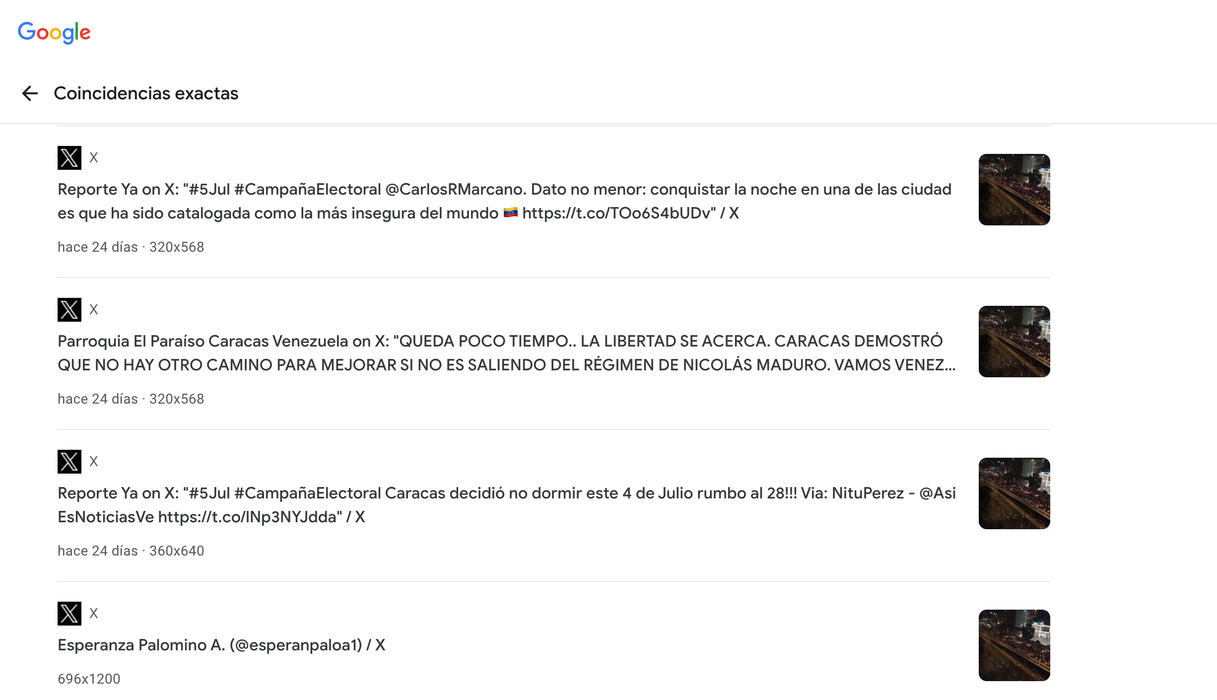 Una búsqueda inversa de imágenes en Google Lens con una captura del video da varios resultados con el mismo video, pero publicados en redes sociales el 5 de julio de 2024. Ese día se celebra en el país el Día de la Firma de la Declaración de Independencia y, este 2024, coincidió además con el inicio de la campaña electoral para elegir presidente que culminó el 28 con la votación.