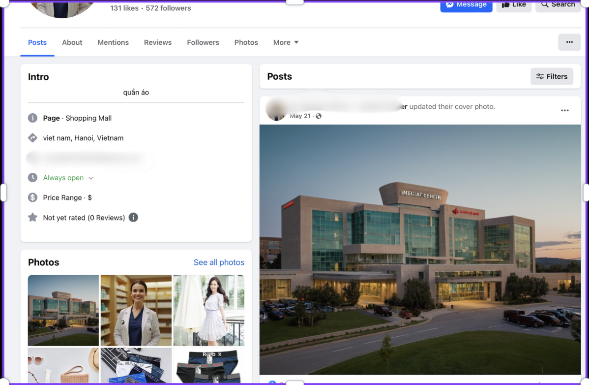 El perfil de la cuenta que compartió las grabaciones desinformantes es de una página de compras creada en 2022 que muestra fotos de ropa interior masculina y carteras. Además, confirmamos que el enlace incluido en las publicaciones no corresponde al sitio web de ninguno de los médicos.