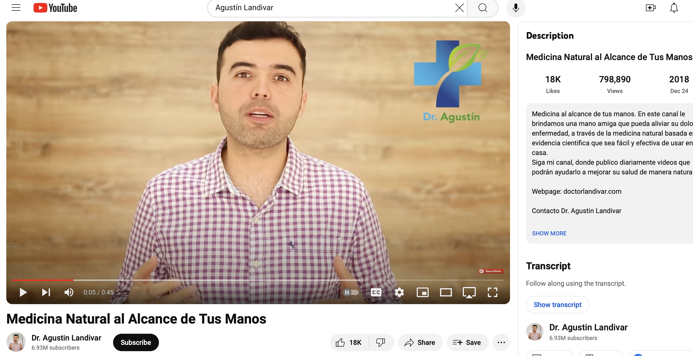 Mediante una búsqueda en YouTube con las palabras Agustín Landivar, encontramos un video publicado el 24 de diciembre de 2018 en su cuenta oficial, que suma más de 6.9 millones de suscriptores. Al compararlo con el contenido que estamos verificando, identificamos que la camisa y el fondo eran iguales; sin embargo, la voz y lo que dijo Landivar era diferente.