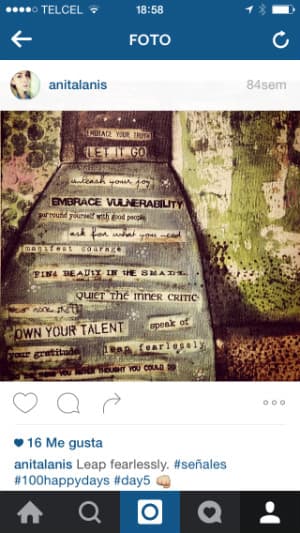 #Day5: La foto de un cuadro que dice " leap fearlessly" . La señal que nunca entendí aunque se leyera bonita y que, por lo tanto, no me hizo ni poquito feliz. Pero estoy segura de que fue una señal y las señales se comparten por si alguien más las llega a comprender.