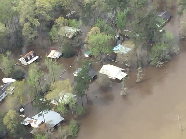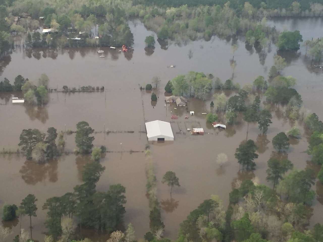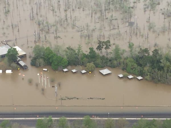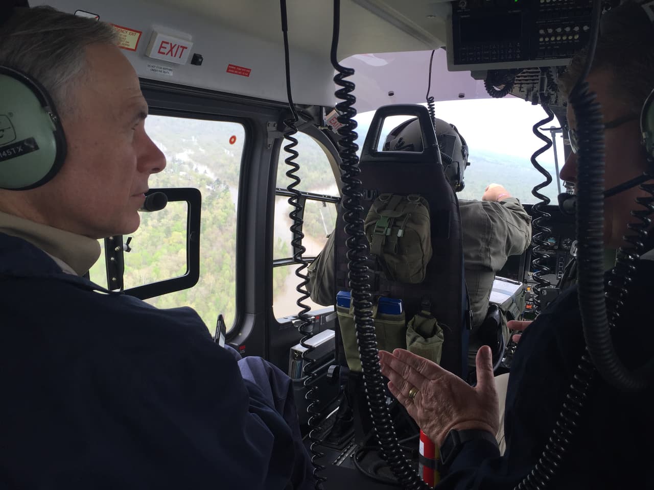 El gobernador de Texas sobrevoló las zonas afectadas por las inundaciones acompañado de personal de rescate del condado Orange
