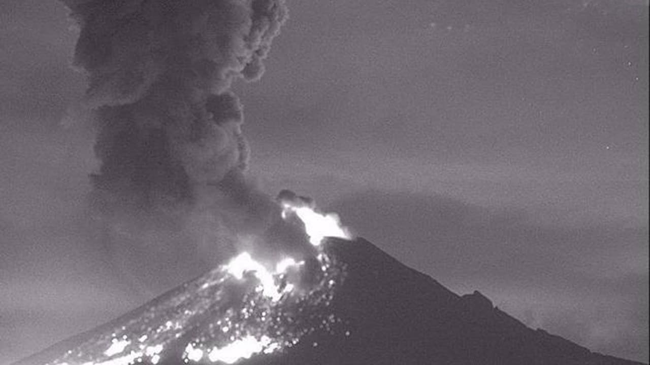 Protección Civil informó que es la mayor registrada en tres años y piden a los pobladores aledaños al volcán protegerse de la ceniza.