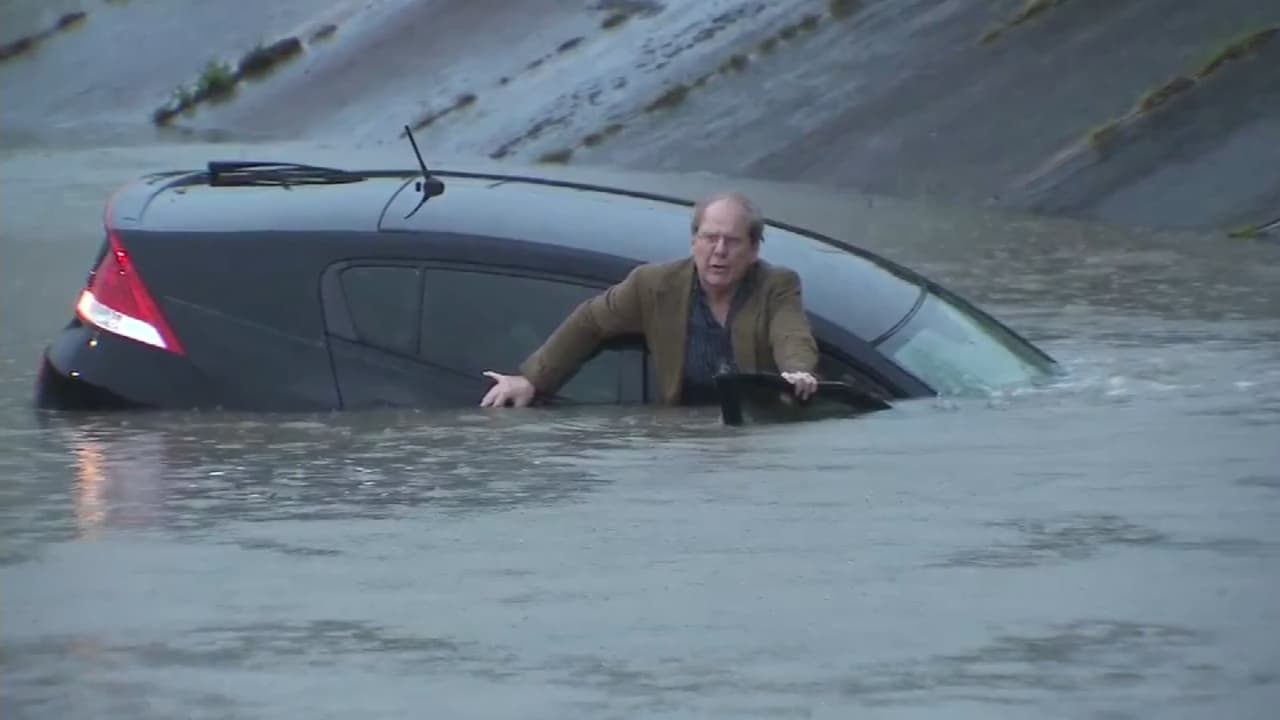 Un reportero rescató a un hombre de un auto a punto de hundirse en Texas