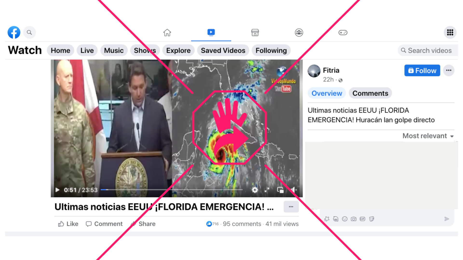 Meses después del paso de Ian por Estados Unidos, se ha hecho viral en Facebook un video que habla de ese huracán como si se tratara de un fenómeno actual.