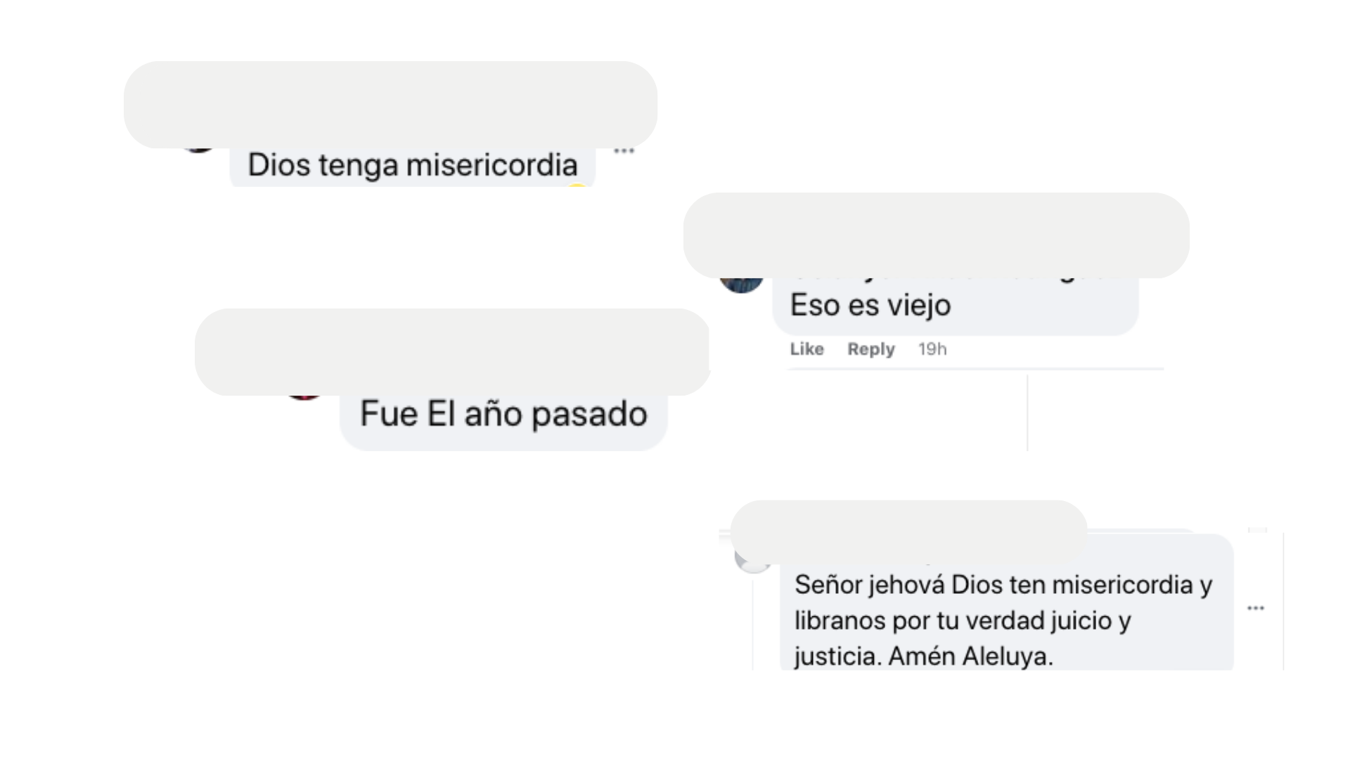 En los comentarios, muchas personas parecen dar por cierta la desinformación y piden “misericordia” o escriben oraciones. Mientras que otras la ponen en duda y escriben que “eso es viejo” o que fue “el año pasado”.