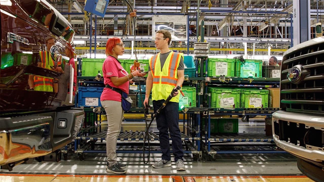 Mark Zuckerberg pasó un día escuchando y trabajando junto a los obreros de la planta de camiones de Ford en las afueras de Detroit.