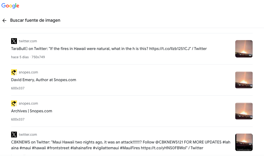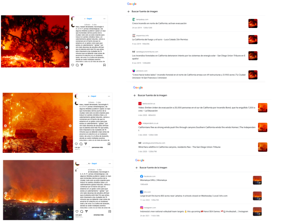 En cuanto a la publicación de Instagram, en elDetector encontramos que no solamente está fuera de contexto la primera foto que comparte (y que muestra el fuego en la refinería en 2018), sino que la mayoría de las imágenes difundidas corresponden a otros eventos que no tienen nada que ver con los incendios ocurridos en Maui (Hawaii) en agosto de 2023. Búsquedas inversas en Google de esas fotografías nos llevaron a imágenes de antiguos incendios en California y de otro que sí sucedió en Hawaii pero en noviembre de 2022.