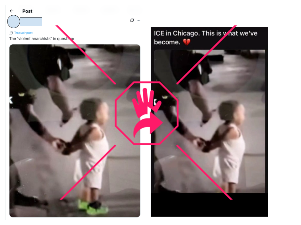 La publicación en la que la persona que es dueña del video responde trata, precisamente, de desmentir que lo que se ve es una detención por parte de ICE de un niño en Chicago. “Esta foto se está volviendo viral, afirmando que muestra a un agente del ICE del Departamento de Seguridad Nacional en el South Side de Chicago deteniendo a un bebé negro y colocando bridas en sus manos, es mentira. Es un padre jugando con su hijo”, se lee.