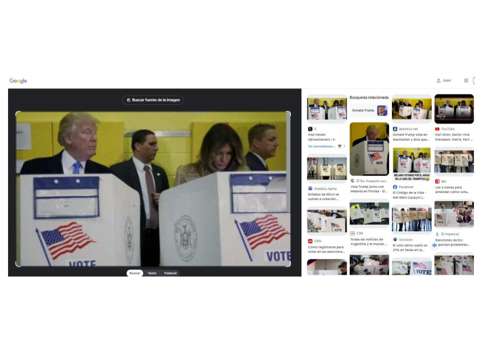 Con una búsqueda inversa de imágenes en Google Lens, hallamos, entre varios resultados, distintos artículos de prensa on line que informan sobre la votación de 2016 del republicano, precisamente porque el gesto de ver a su lado izquierdo, donde votaba su esposa, se hizo viral.