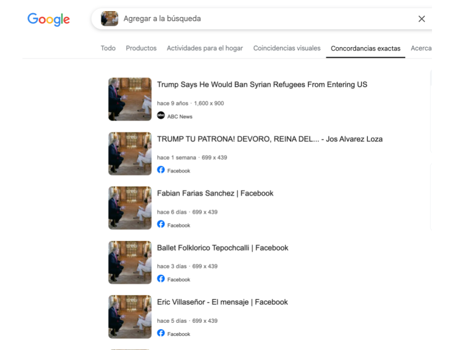 Desde elDetector hicimos una búsqueda inversa de imágenes en Google Lens, a partir de la fotografía del posteo, y uno de los resultados que esta arrojó fue una nota de ABC News del 17 de noviembre de 2015 titulada: “Trump dice que prohibiría la entrada a Estados Unidos a refugiados sirios”. El texto señala que ese día durante una entrevista, Trump, quien entonces era candidato a la presidencia para el período 2017-2021, dijo a Walters que prohibiría el ingreso a Estados Unidos a todos los refugiados sirios, cristianos y musulmanes.