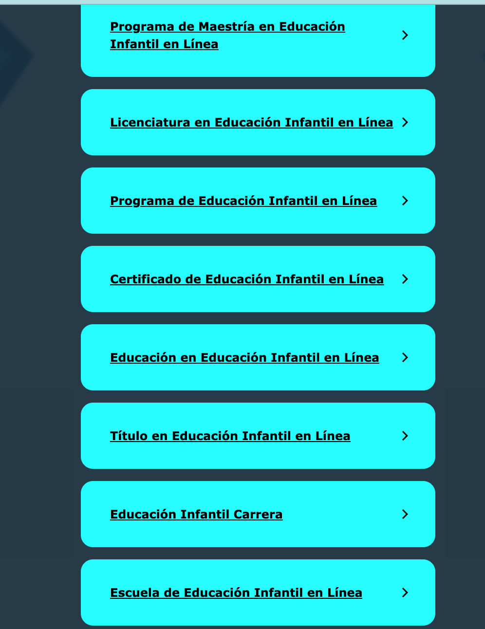 Ninguna de estas opciones lleva a una página oficial de la SEP o del gobierno de México; cuatro llevan a las páginas de distintas universidades mexicanas y una guardería. Ninguna de las páginas ofrece ese curso de cuatro semanas ni el otorgamiento de una certificación de educación preescolar, solo ofrecen información sobre maestrías, doctorados o planes de cuidado en el caso de la guardería.