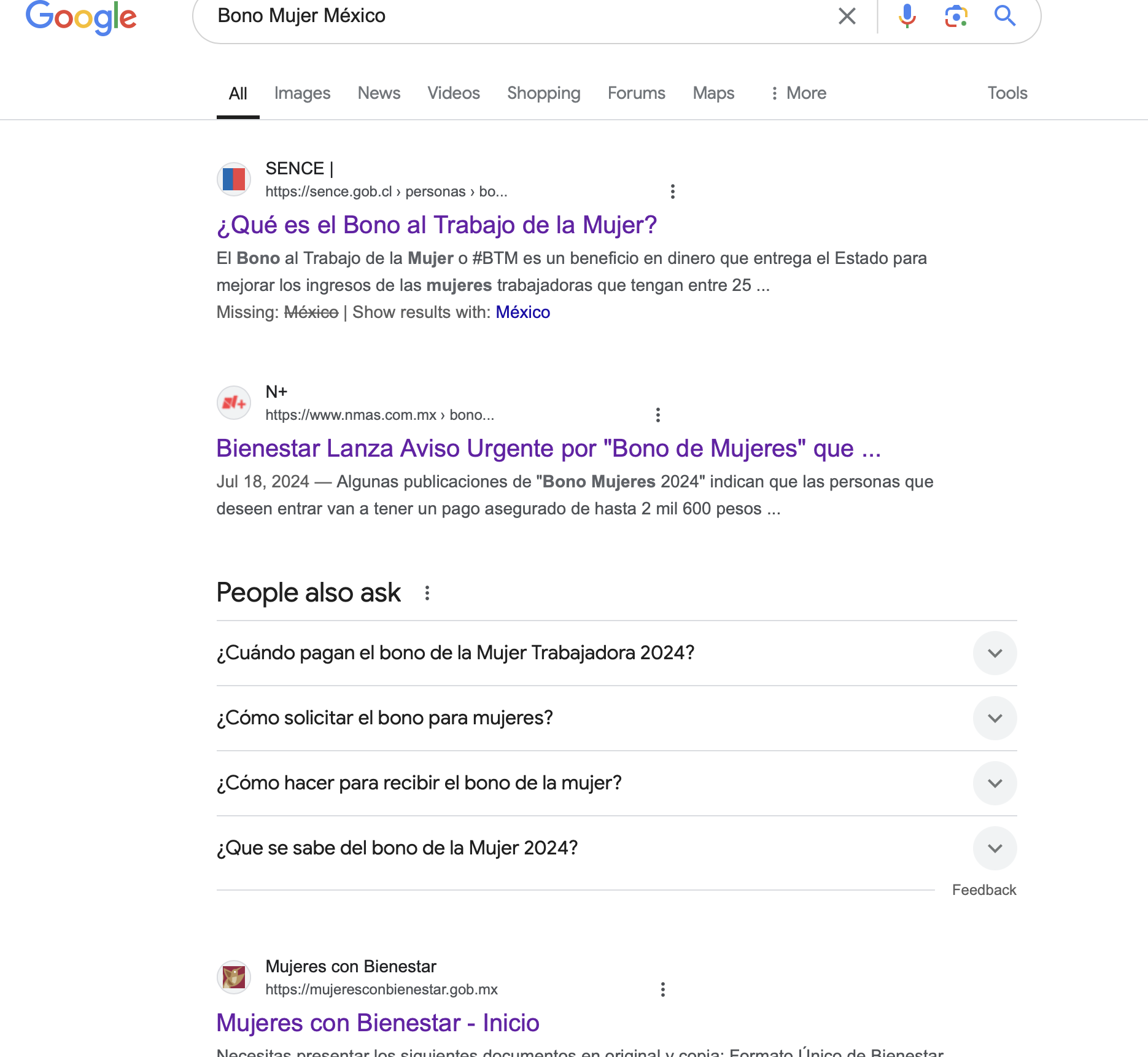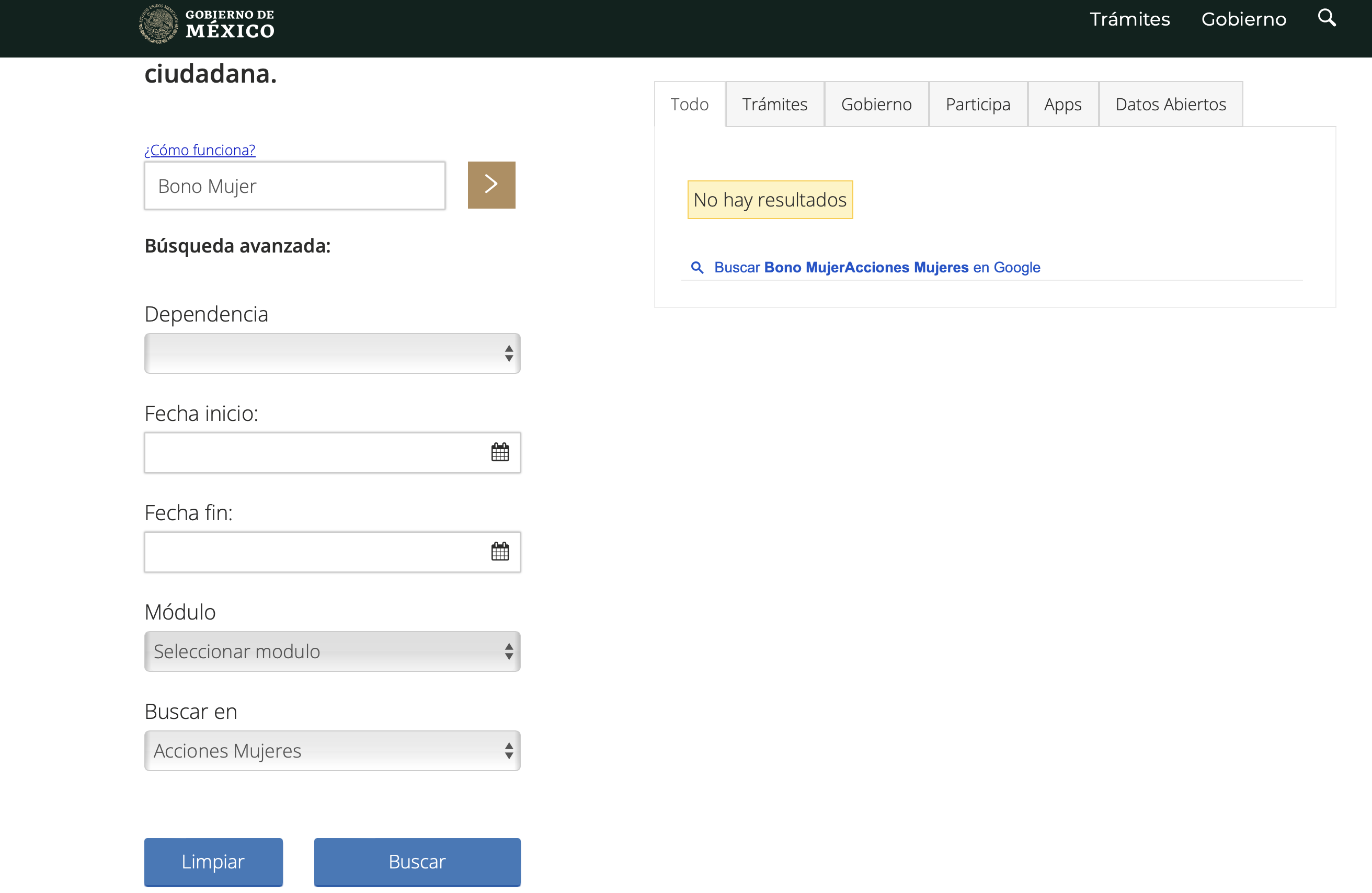 Además, realizamos una búsqueda con el nombre del supuesto programa de ayuda para mujeres en el sitio web de la Secretaría de Bienestar, responsable de la asistencia social en México, y la búsqueda no arrojó resultados.