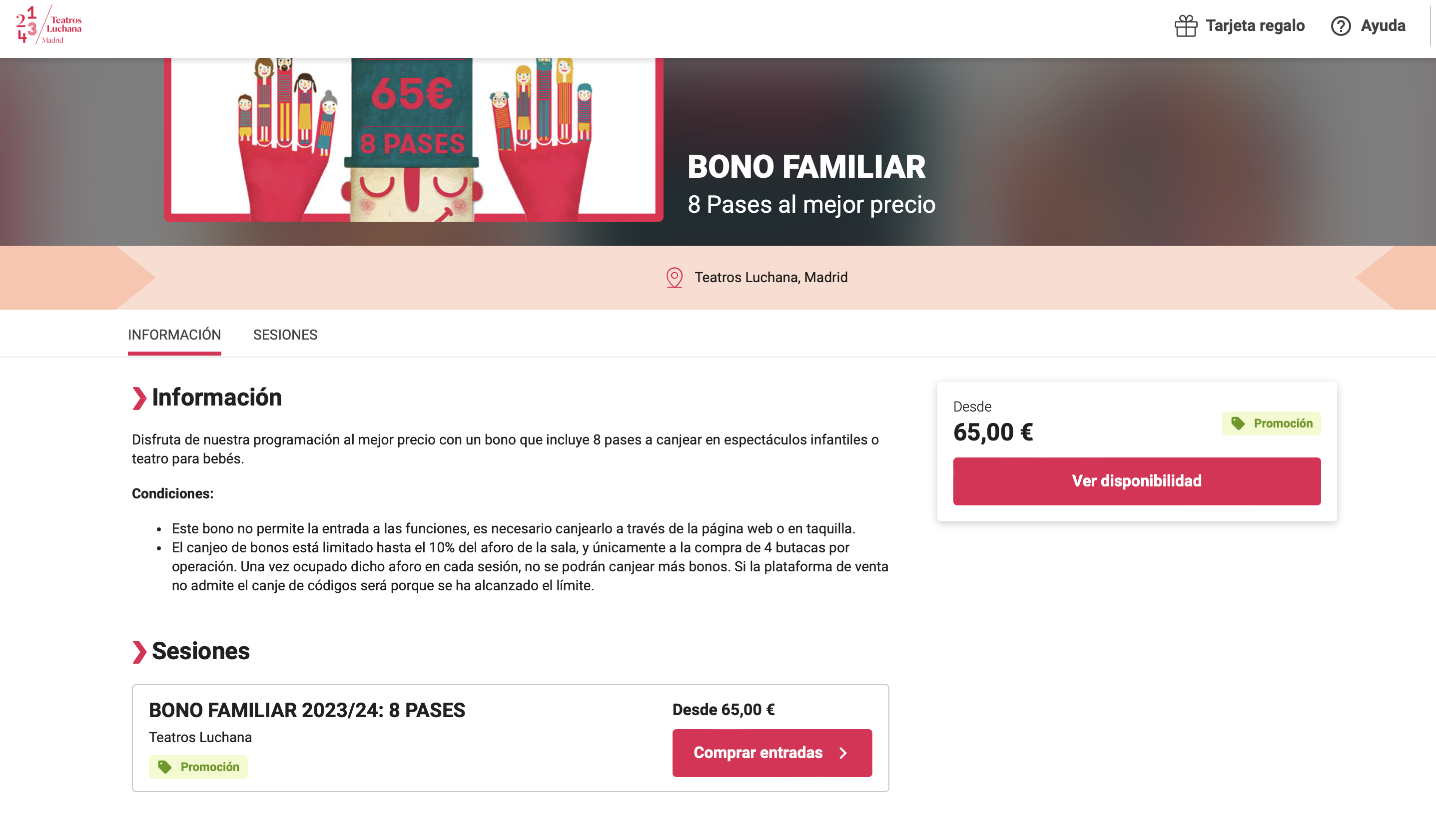 En busca de información adicional, desde elDetector accedimos al enlace proporcionado en la publicación, que prometía ofrecer el supuesto beneficio. Sin embargo, al ingresar al sitio web, notamos que este no está relacionado con México ni con programas de asistencia social para mujeres. En realidad, el portal está orientado a España y ofrece un bono familiar que, según se lee, “incluye 8 pases para canjear en espectáculos infantiles o teatro para bebés” a partir de “65 euros”.