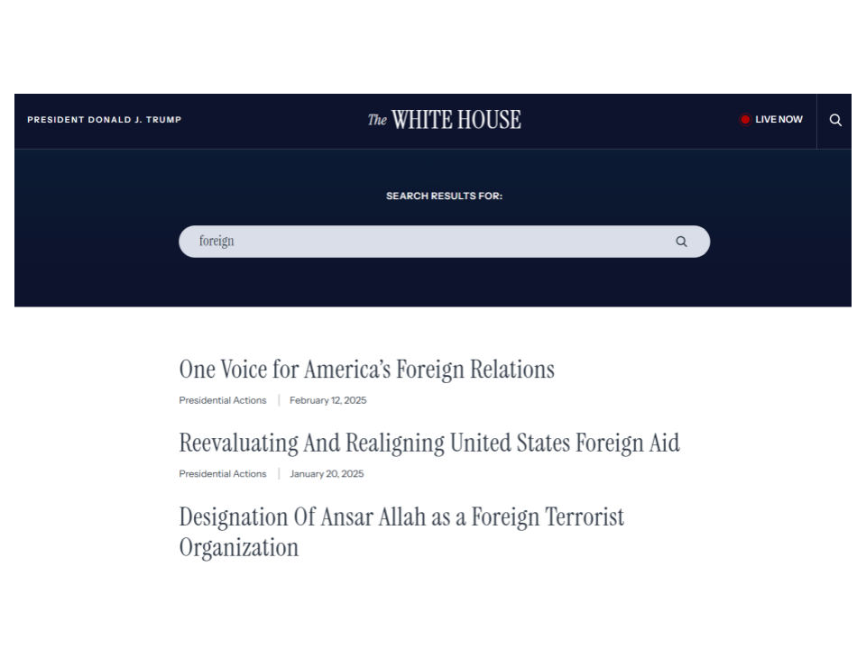 Comprobamos la falsedad de la afirmación con una revisión a las acciones presidenciales del presidente Trump, las órdenes ejecutivas que ha firmado, y con una búsqueda con palabras clave en Google, en inglés y español.