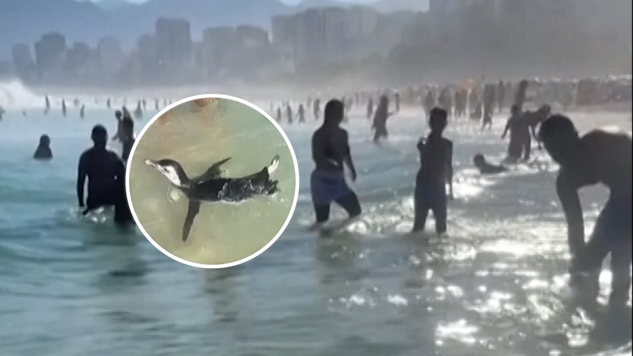 Un ejemplar de pingüino de Magallanes, especie nativa de la Patagonia, fue grabado mientras nadaba en la playa Arpoador en Río de Janeiro. Estos animales migran en busca de alimento y en ocasiones llegan al sur de Brasil por cambios en las corrientes marinas o escasez de presas.