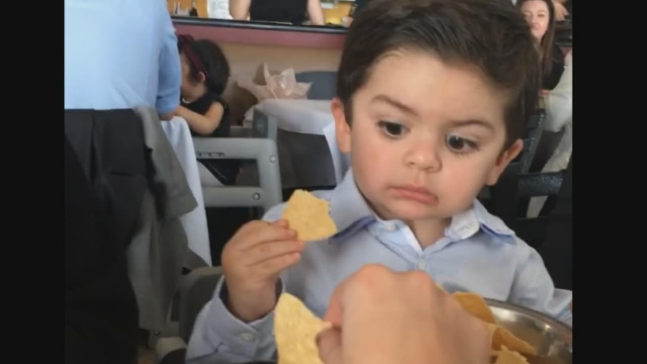 Este chico estaba felizmente comiendo cuando alguien metió la mano para tomar un poco de su comida y la reacción está siendo compartido por cientos en las redes sociales.