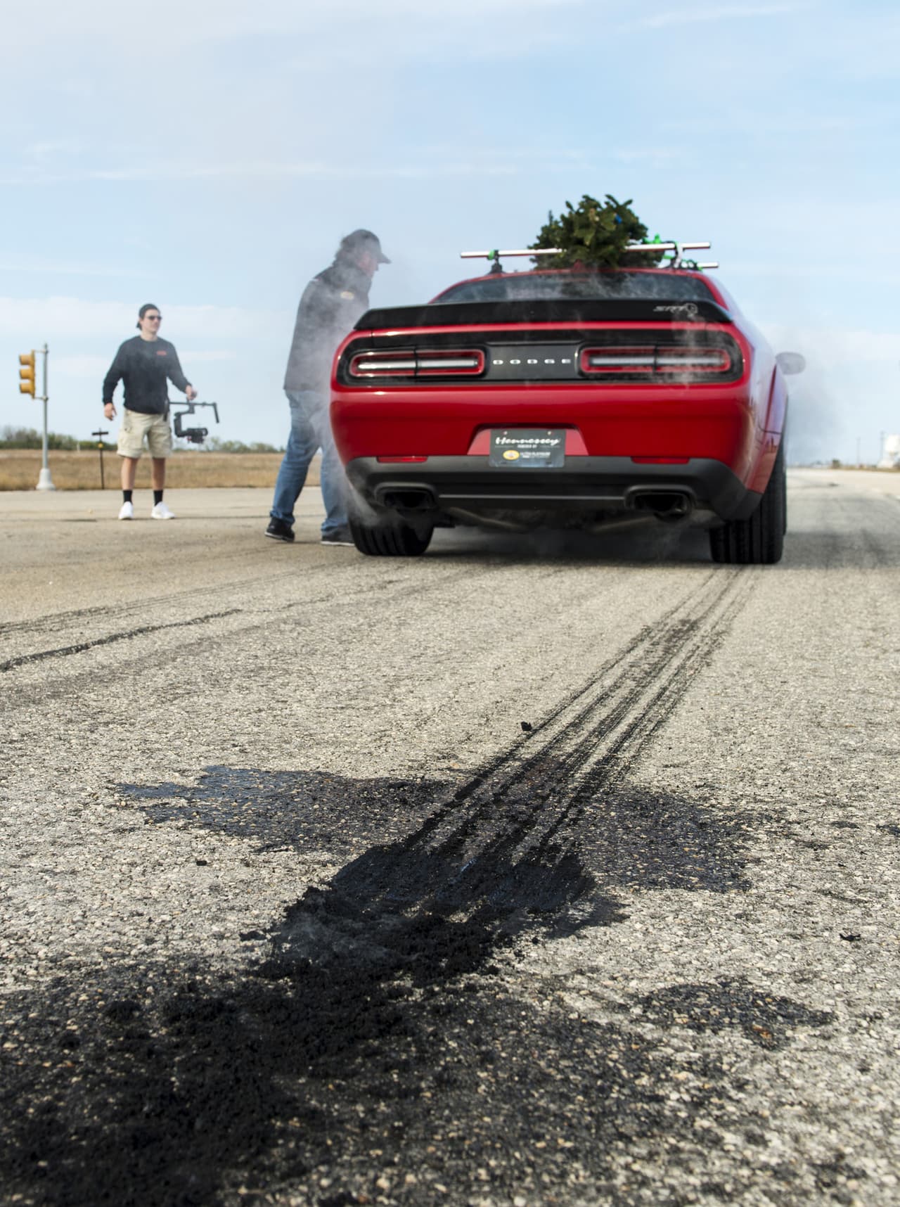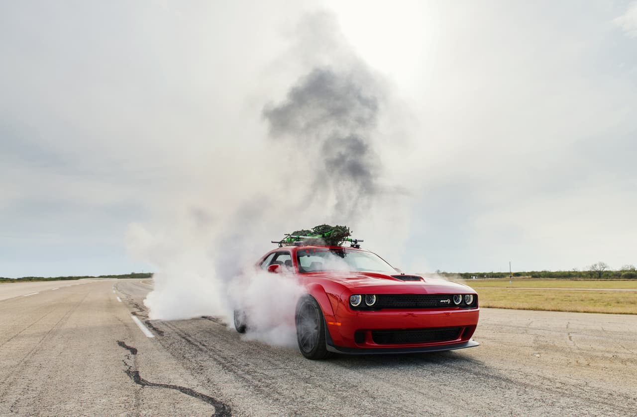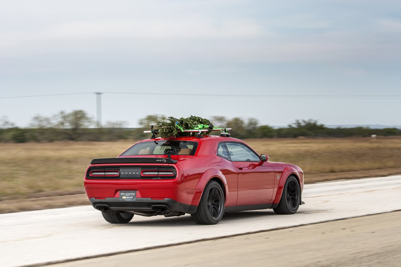 Solo a Hennessey se le ocurre amarrar un árbol de navidad en el techo de un Hellcat y andarlo a 174 MPH (278 km/h) para celebrar las fiestas navideñas y estamos agradecidos por ello.