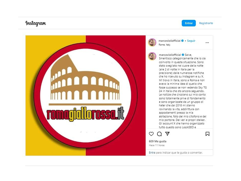 “Hola, niego categóricamente estar involucrado en esta situación. Me despertaron en mitad de la noche (concretamente a las 2 de la madrugada en Italia) las numerosas notificaciones que recibí en Instagram y X. Estoy en Italia, en Roma, y no tenía ni idea de lo que había pasado [...] Las noticias que circulan sobre mí son totalmente infundadas y están organizadas por un grupo de haters [odiadores] que llevan arruinando mi vida desde 2018, incluso con acosos a mi domicilio, fotos de mi portón y de la puerta de mi casa. Unos acosadores de verdad”, escribió.